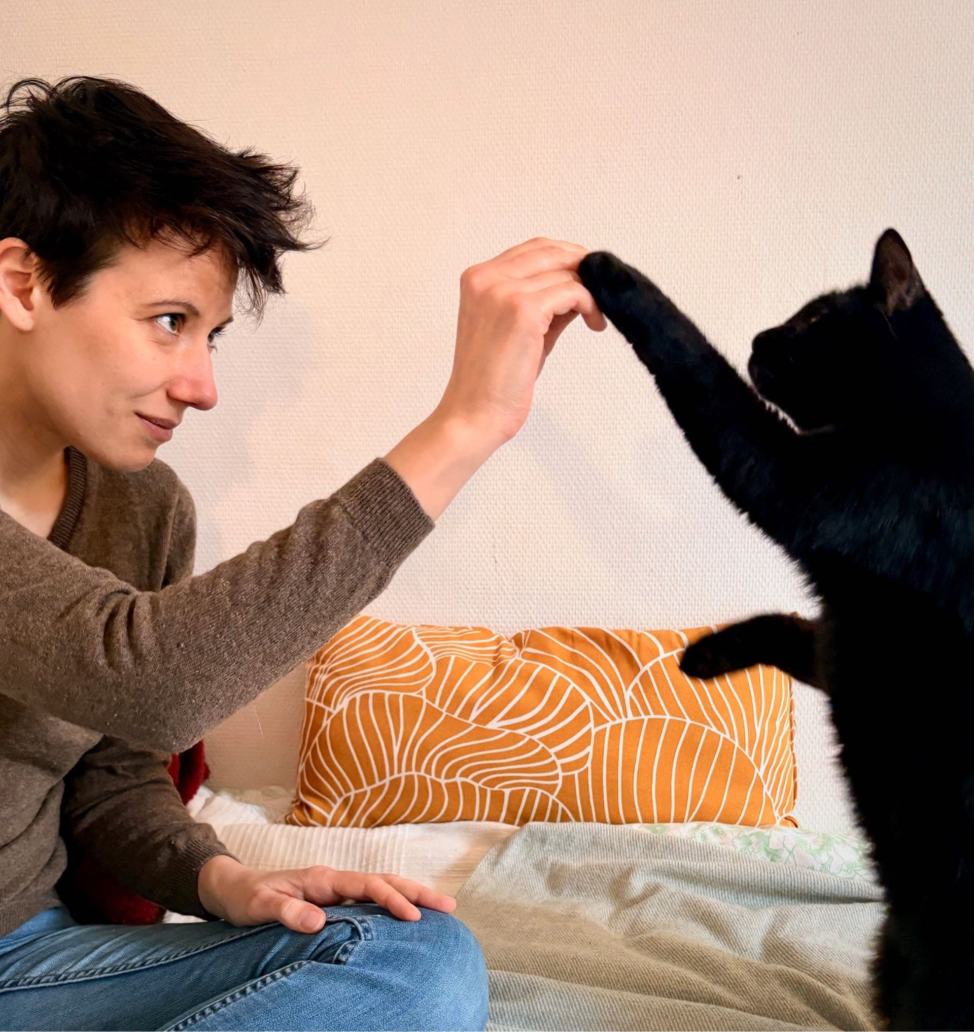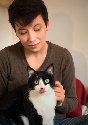 Proche des animaux depuis l'enfance, c'est la rencontre avec Tamino en 2015, puis l'arrivée de Senta en 2019 qui m'ont décidée à me former au comportement félin. Depuis 2022, j'accompagne les familles de Bretagne et d'ailleurs dans leur relation avec leur chat.